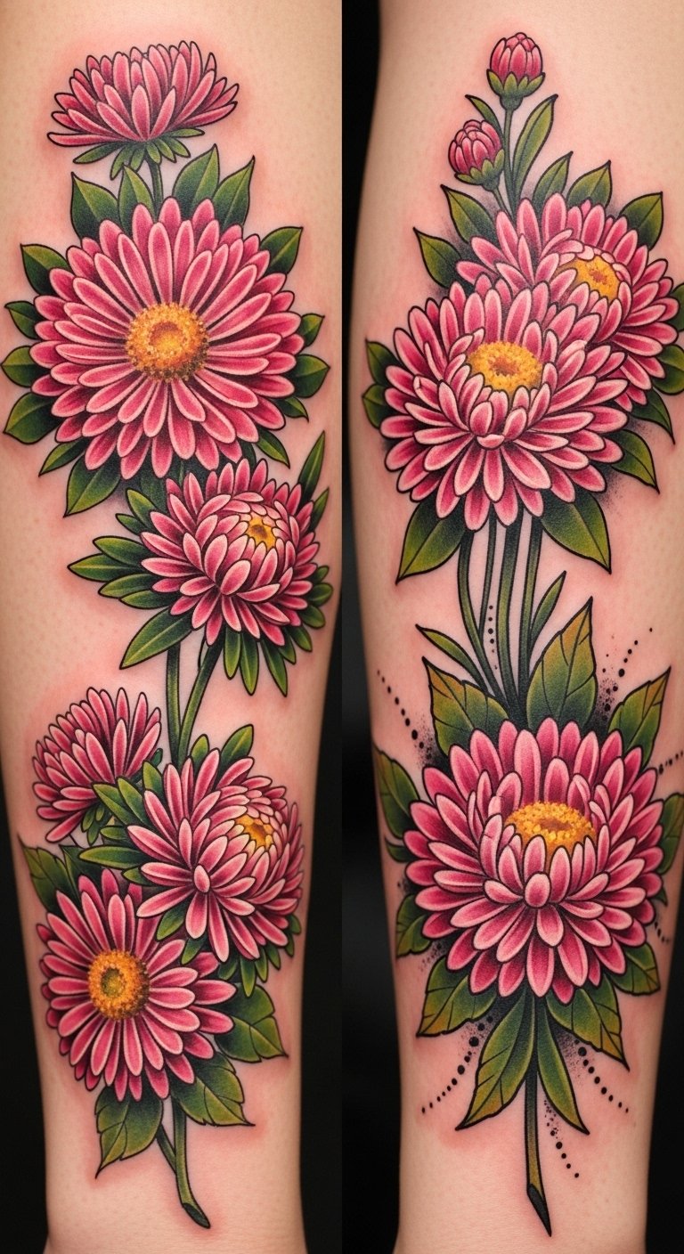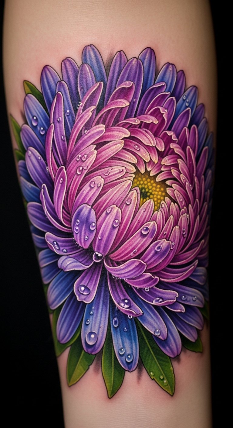 Vibrant Color Realism in Aster Flower Tattoos