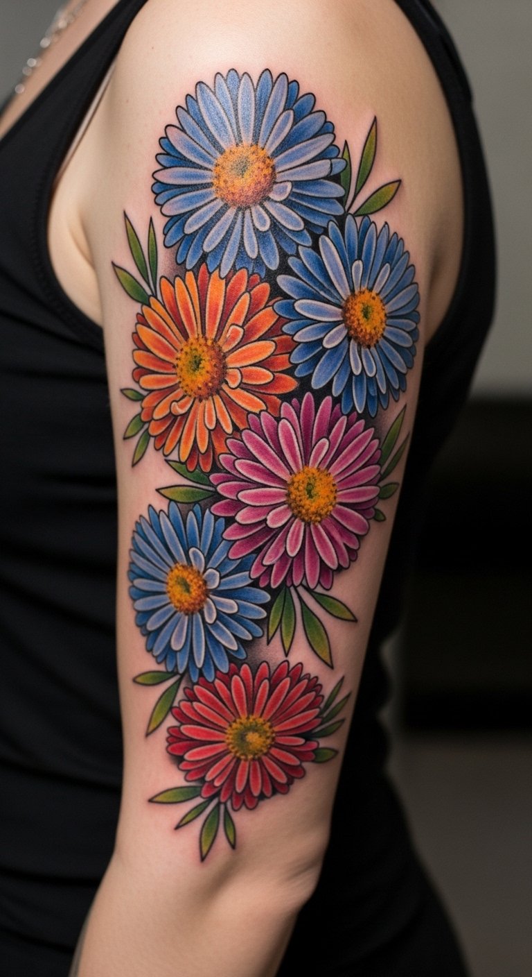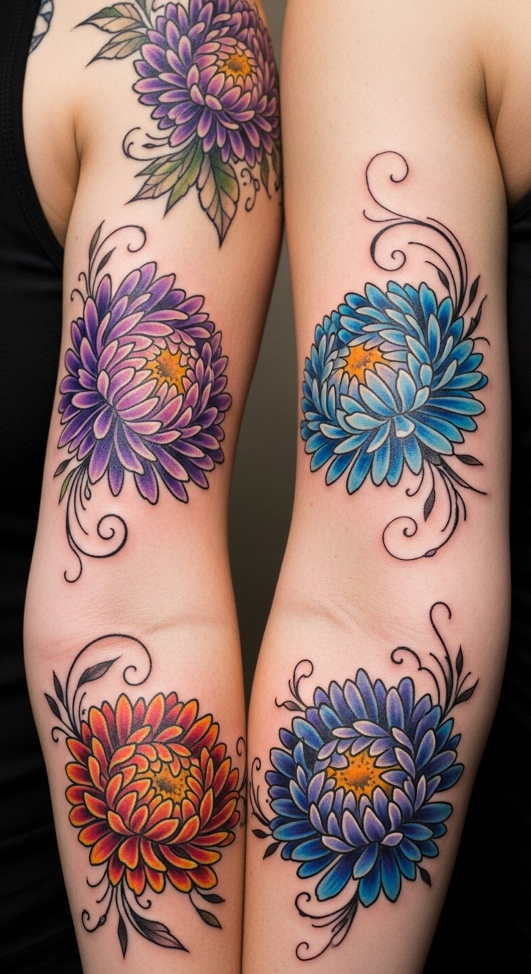 Layered Color Schemes in Aster Tattoos