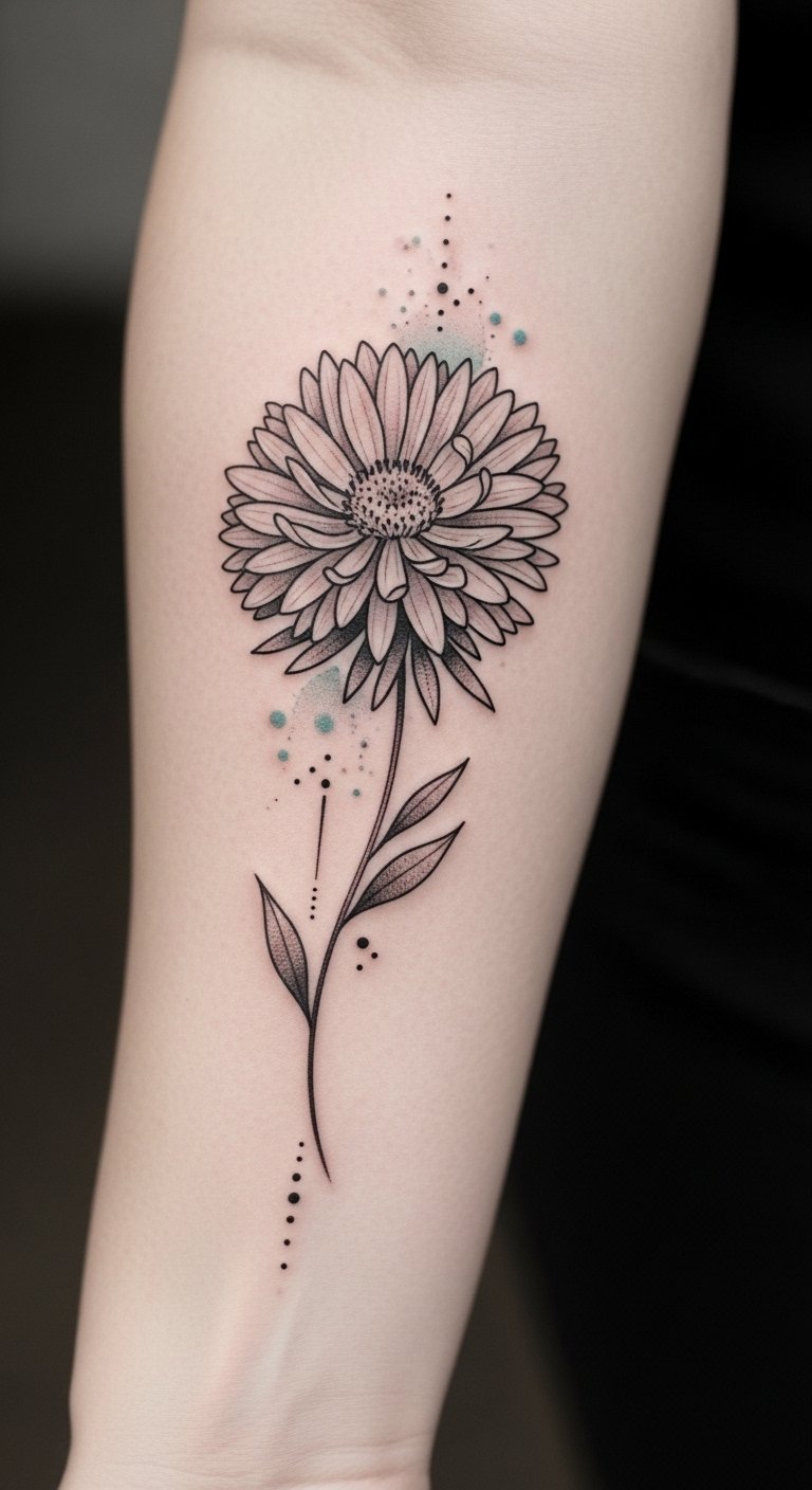 This forearm placement offers visibility, allowing you to showcase the personal symbolism of the aster—representing love, wisdom, and resilience.