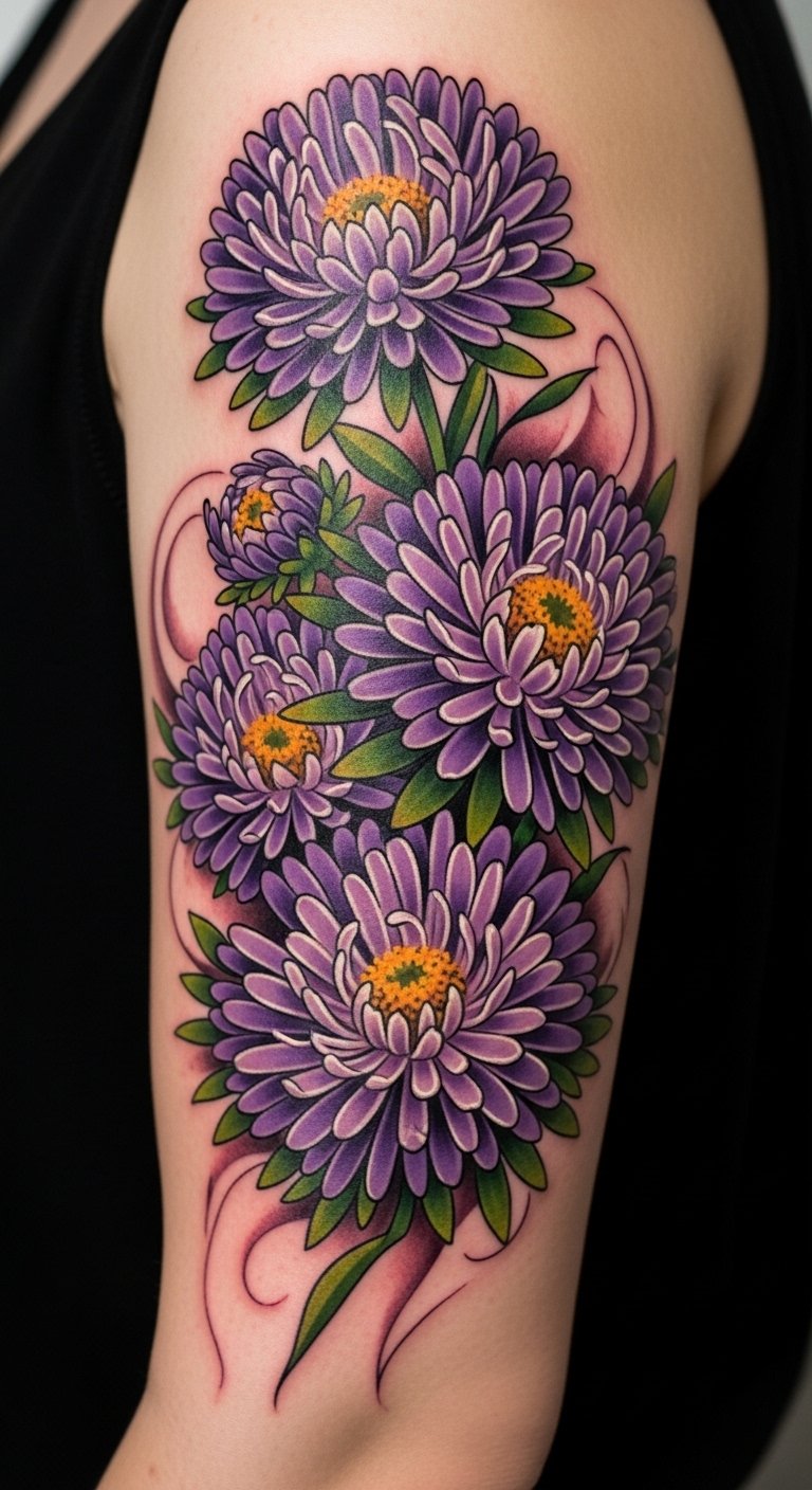 When you want to commemorate a special milestone or anniversary, a tattoo featuring aster flowers can serve as a beautiful reminder of growth and transformation.