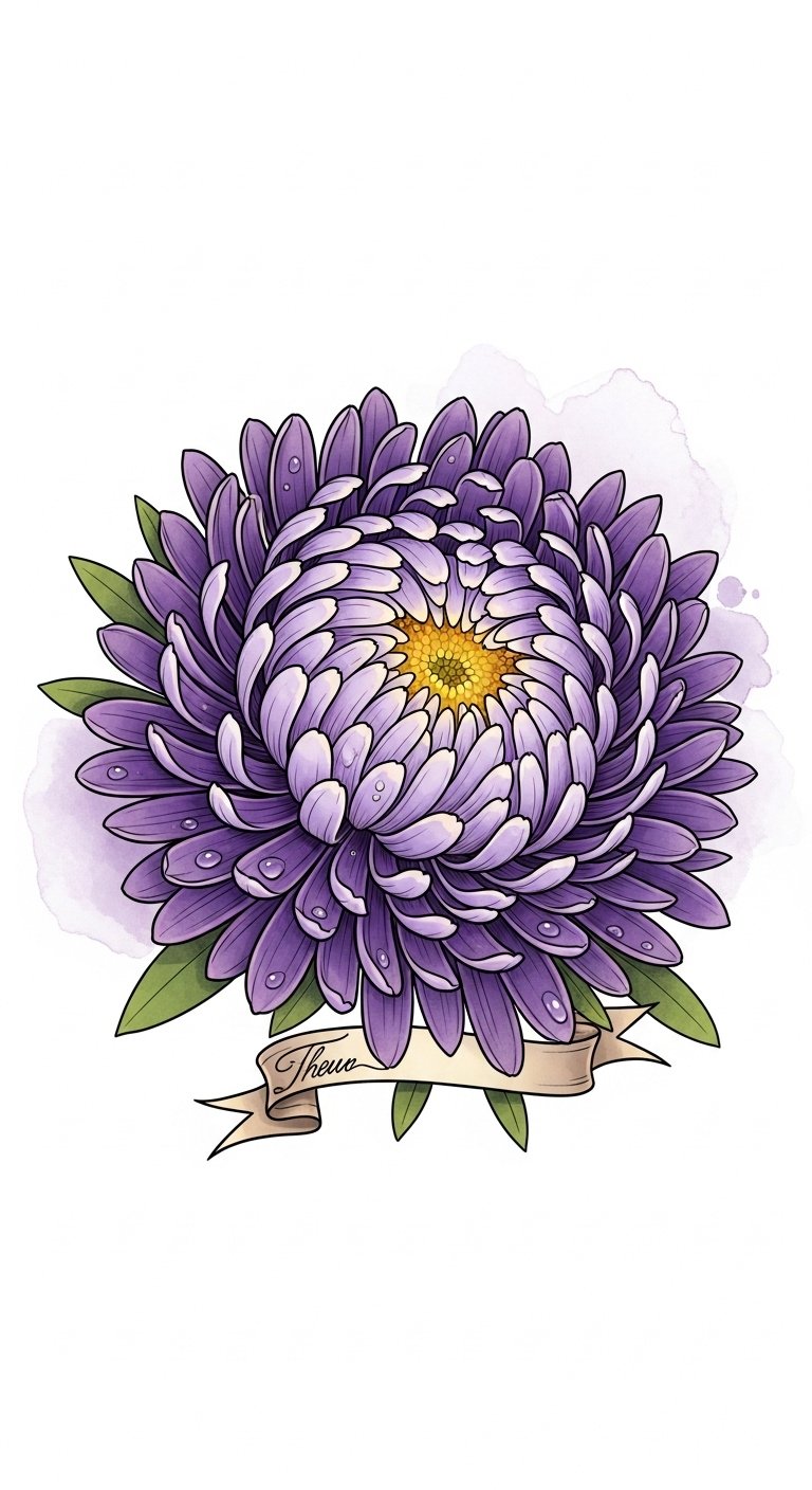 Aster flower tattoos carry profound memorial significance, symbolizing love, wisdom, and resilience.