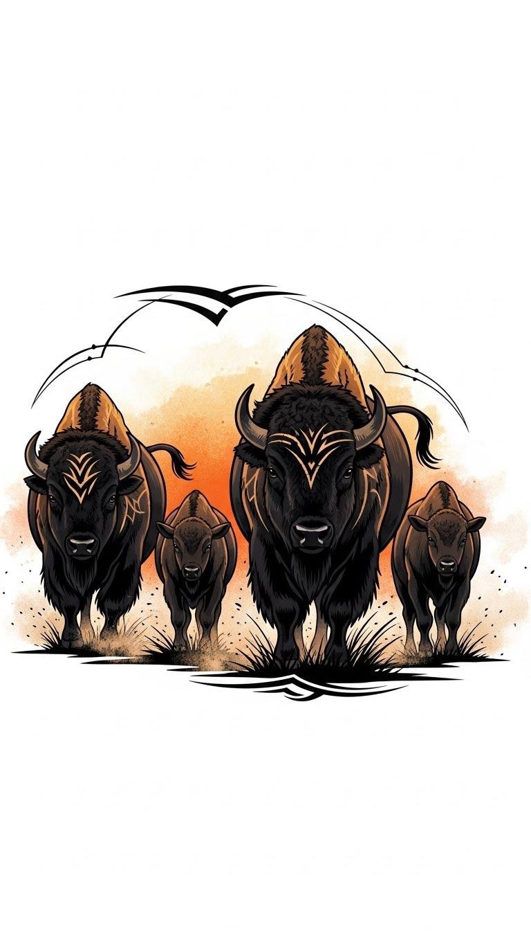 These striking images encapsulate tribal symbolism, celebrating the bison’s cultural significance. Each curve and line tells a story of strength and resilience, connecting you to a rich heritage.