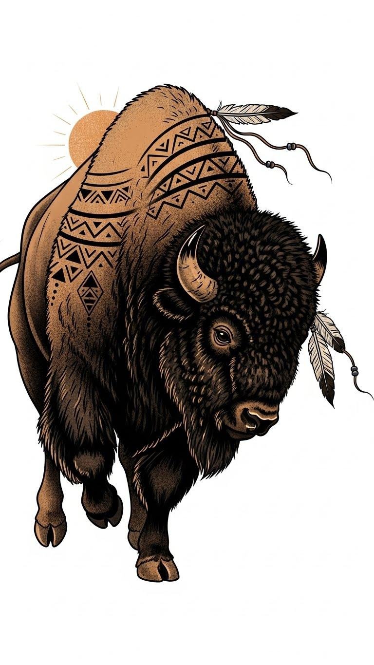 Bison With Tribal Patterns