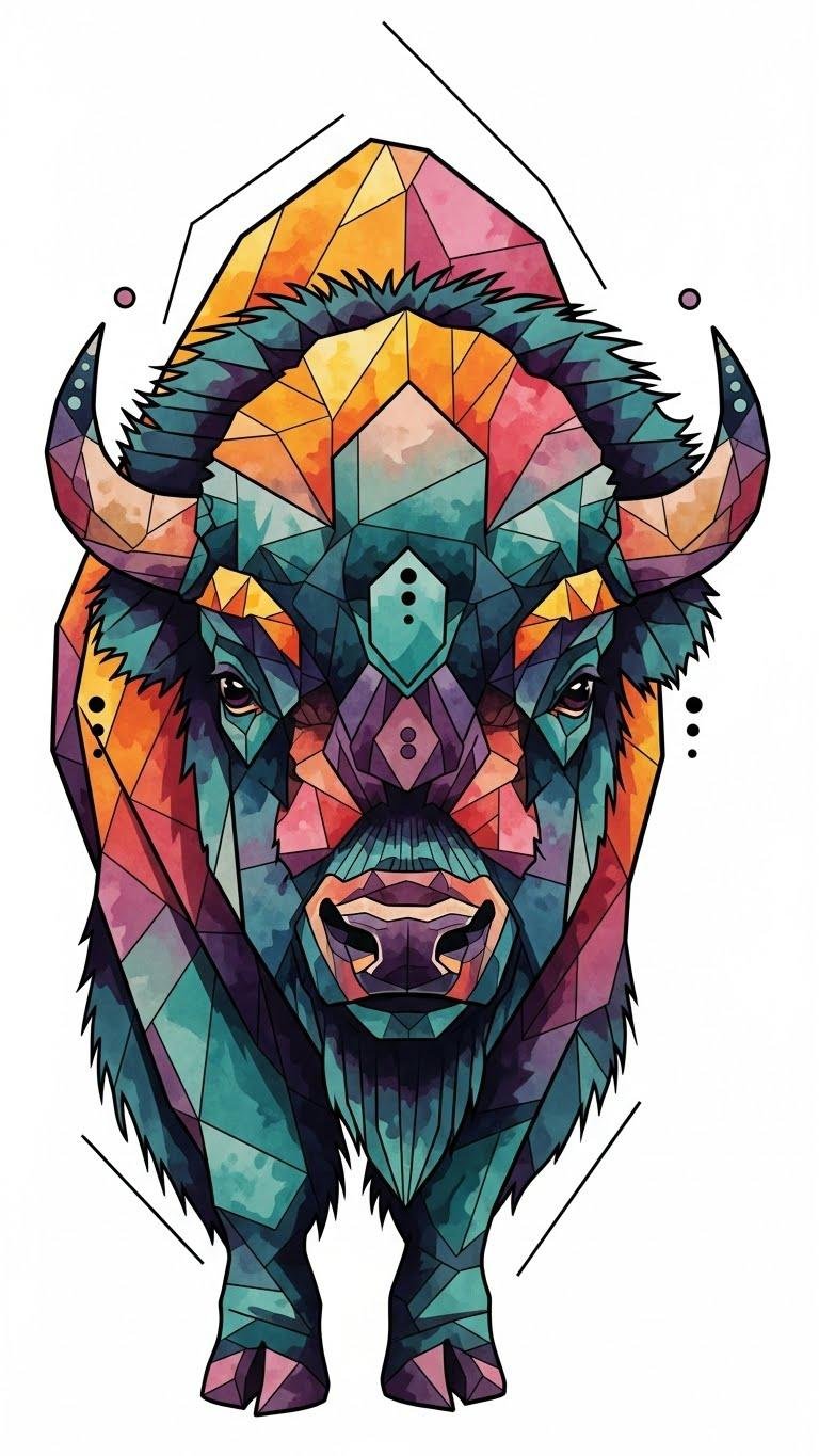 Colorful Bison With Geometric Elements