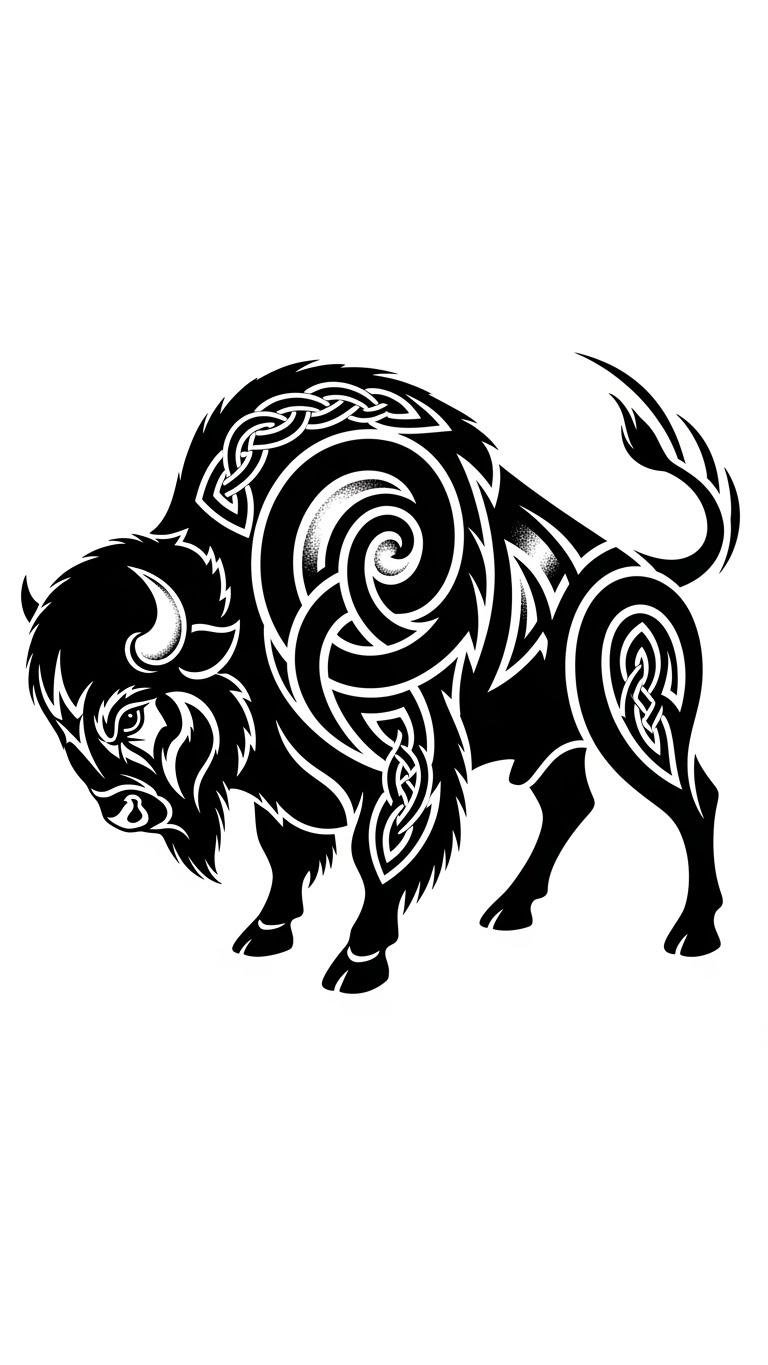 Choosing a tribal bison tattoo allows you to express your freedom while honoring the spirit of the wild. This design channels ancestral power and grounded resilience; its heavy lines evoke protection and perseverance while the flowing knots suggest continuity and community.