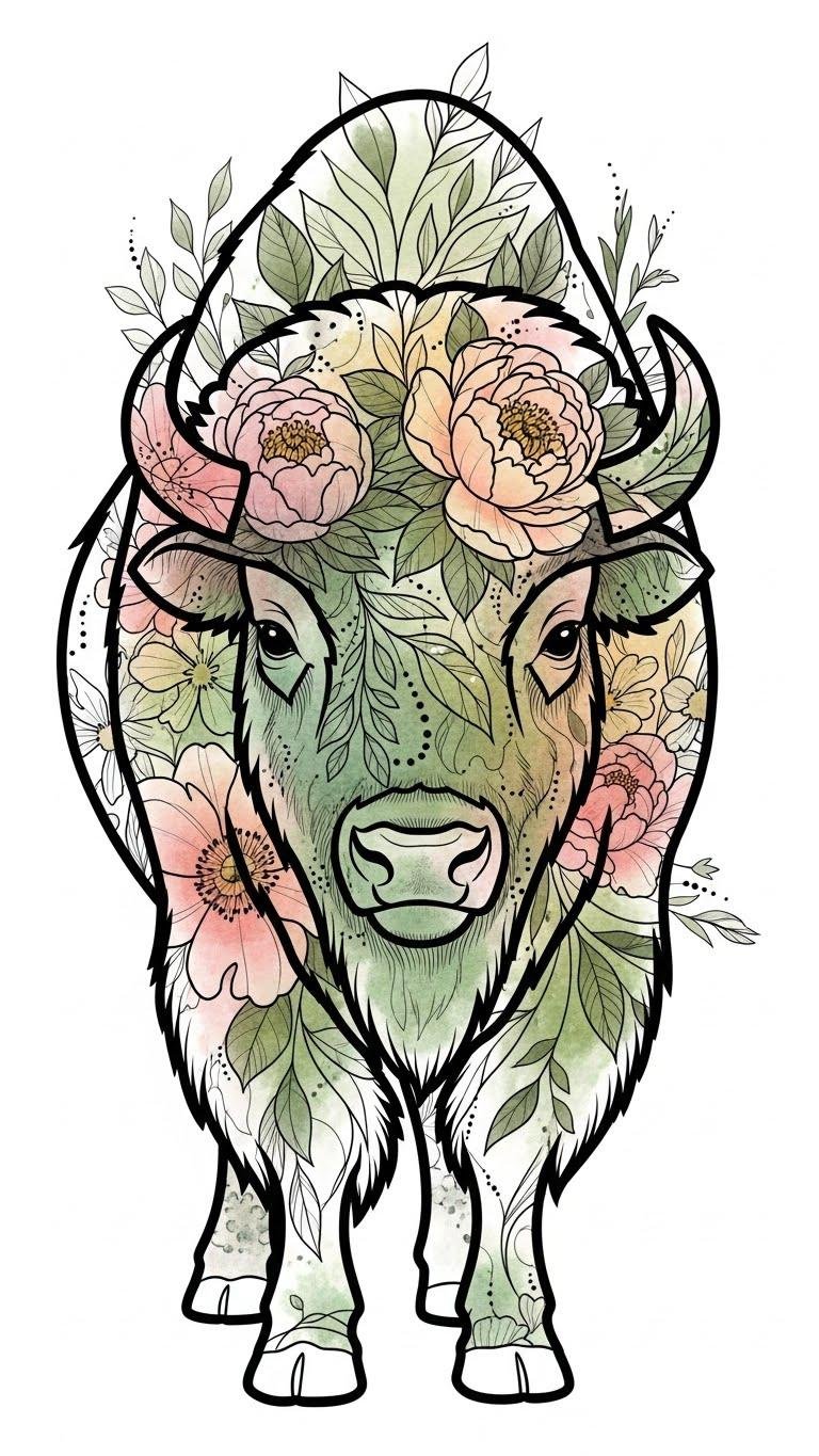 While incorporating floral accents into a bison silhouette, you create a stunning juxtaposition of strength and beauty that speaks to the spirit of nature.