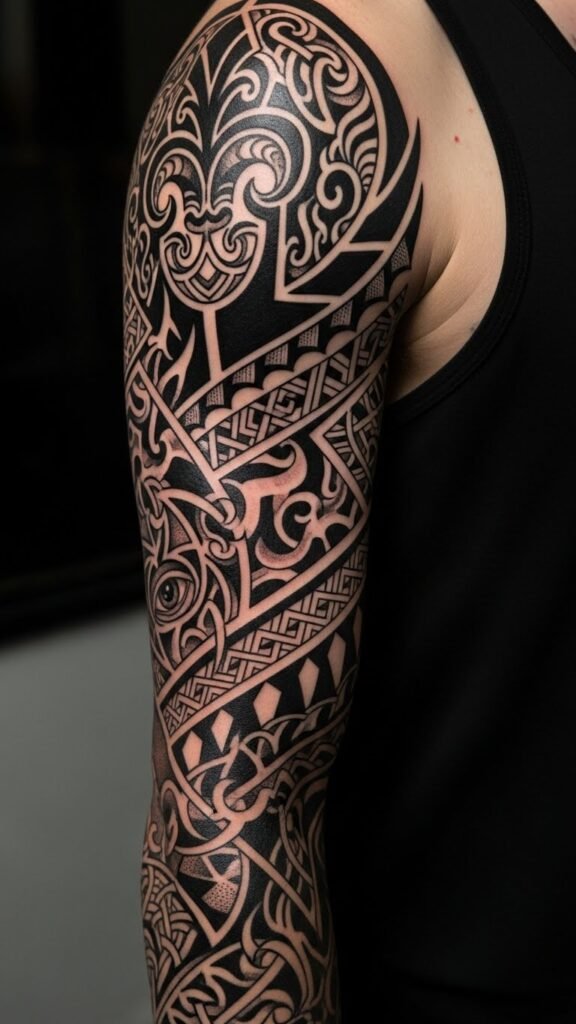 Ideal placement is a full arm sleeve flowing shoulder to wrist to allow visual narrative progression; smaller variations suit a calf or side torso for personal visibility and movement.