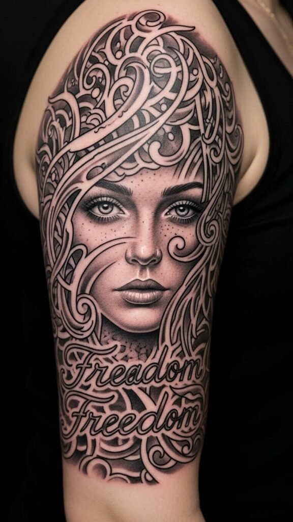 Classic styles infused with vintage influences create a timeless vibe. These tattoos, rich in nostalgic elements, evoke a sense of freedom, allowing you to express your love for the bygone eras while making a bold statement about who you’re today.