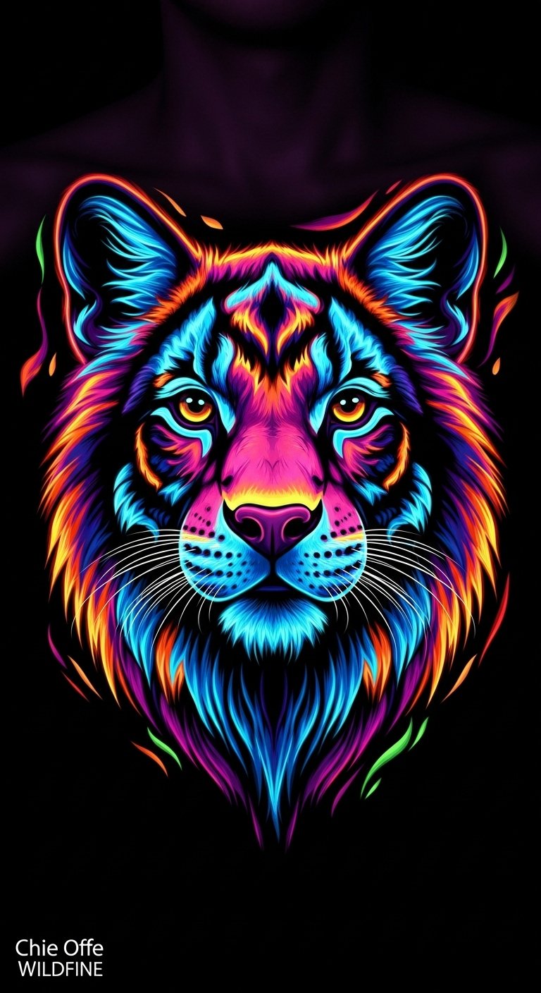 A neon animal portrait tattoo using the provided text as its visual prompt would depict a realistic animal—such as a fox, owl, or tropical fish—rendered in high-contrast blackline with layered neon inks (hot pink, electric blue, acid green, and ultraviolet-reactive pigments). Symbolically, the glowing fauna represents vitality, transformation, and the hidden energy of nature brought into the personal realm; emotionally it feels vibrant, playful, and slightly otherworldly, a celebration of individuality and inner light. Ideal placements: forearm or calf for a vertical composition, shoulder blade or chest for larger pieces that allow the neon glow and blacklight elements to wrap around musculature, or a sleeve panel integrating multiple glowing creatures to create movement.