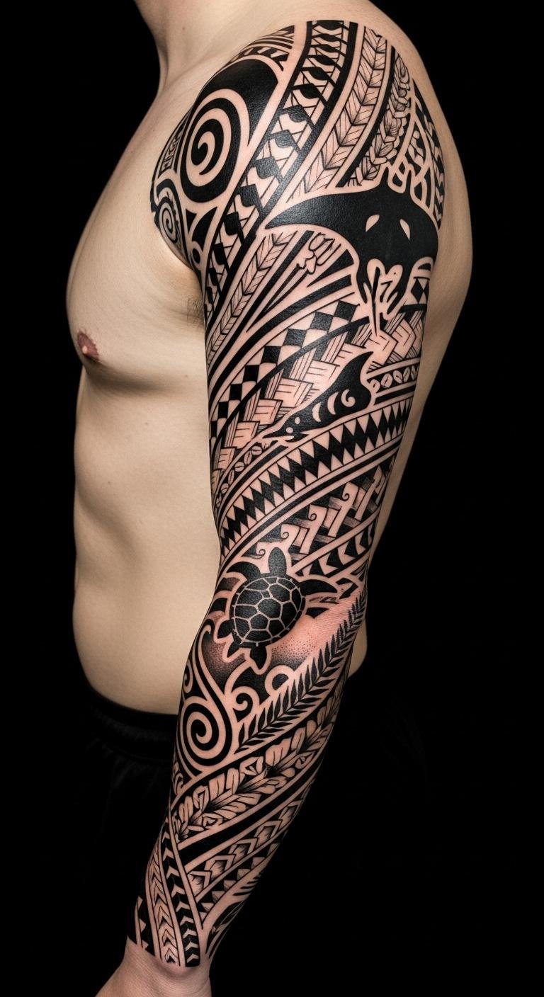 When exploring the world of black sleeve tattoos, Polynesian-inspired designs stand out with their deep cultural significance and striking visuals.