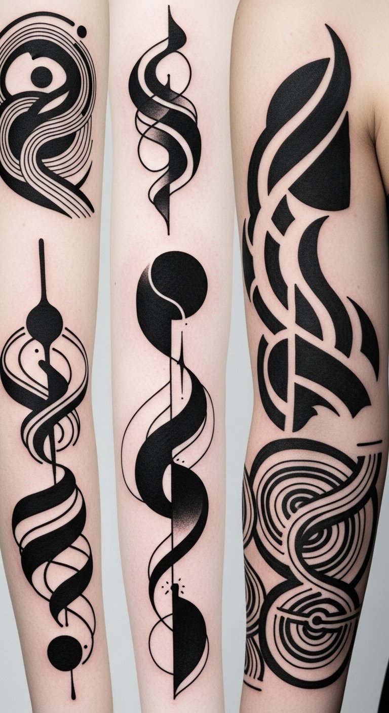 Best placed as a full sleeve moving with muscle contours, the design uses curved lines to flatter arm anatomy, with heavier ink on outer arm and lighter, airy negative areas on the inner arm to balance visibility and intimacy.