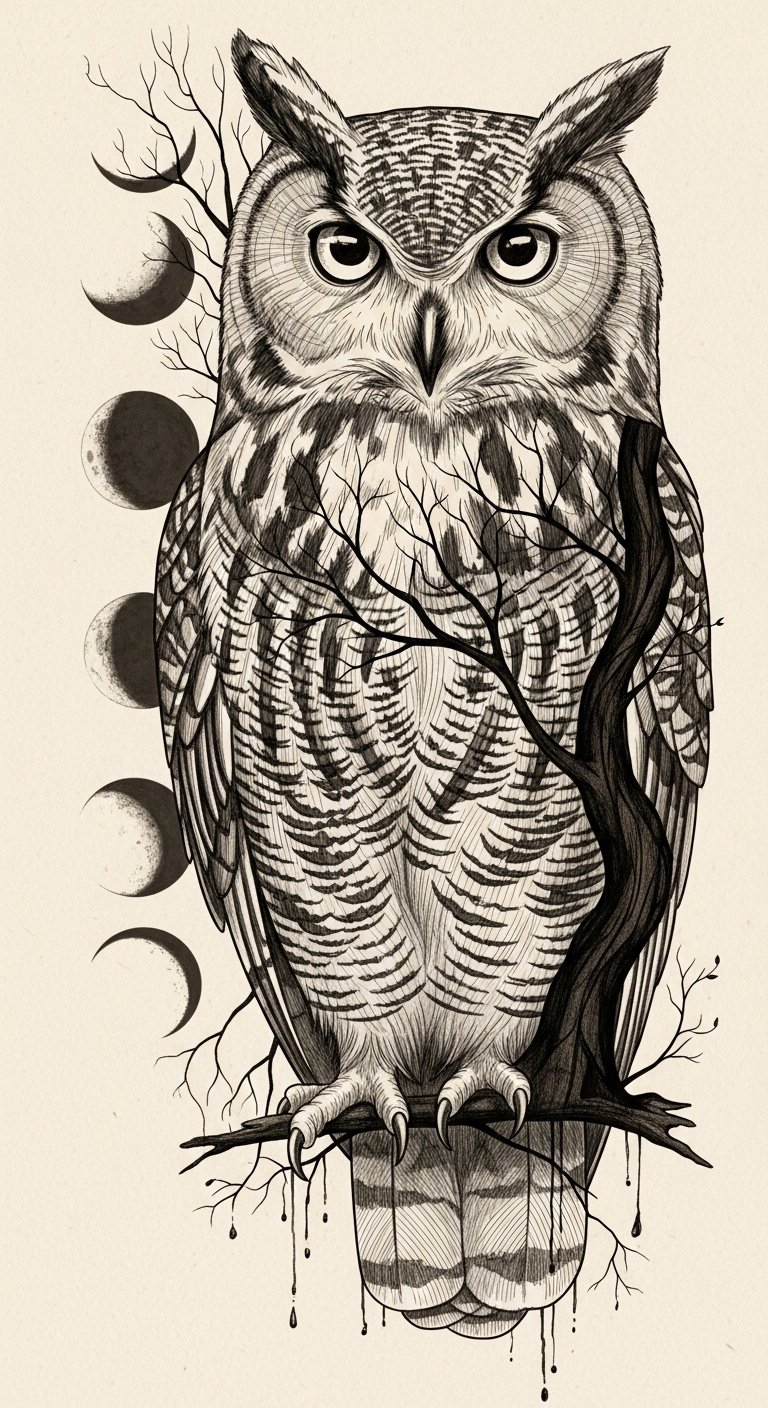 Emotionally it evokes wonder, resilience, and a quiet, mysterious courage; the bold blacks convey permanence and conviction, the dotwork and negative space invite contemplation.