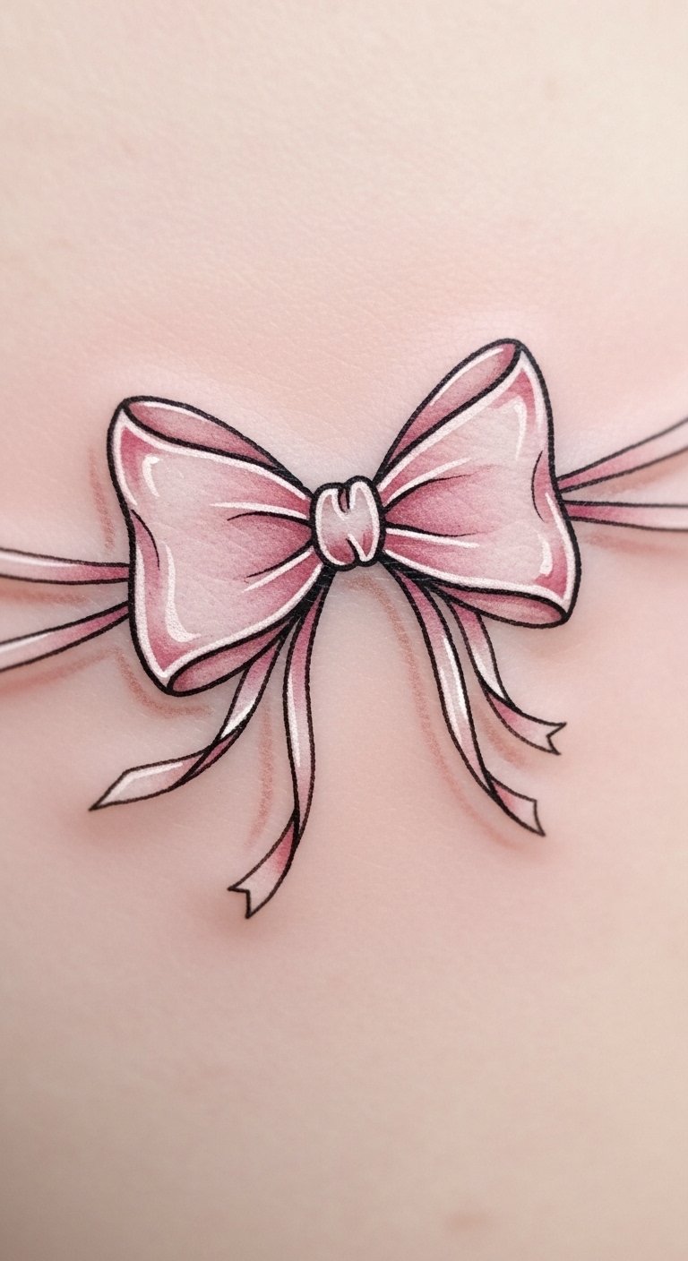 Imagine showcasing your free spirit with a vibrant inked bow, effortlessly drawing attention to your every step.