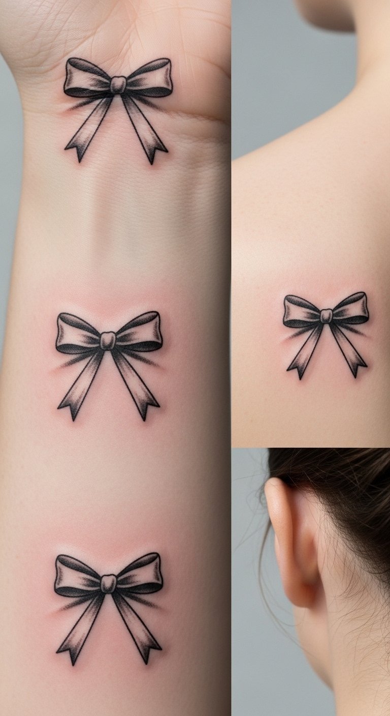 Stacked bows create a striking visual that stands out and adds a playful twist to the classic bow tattoo.