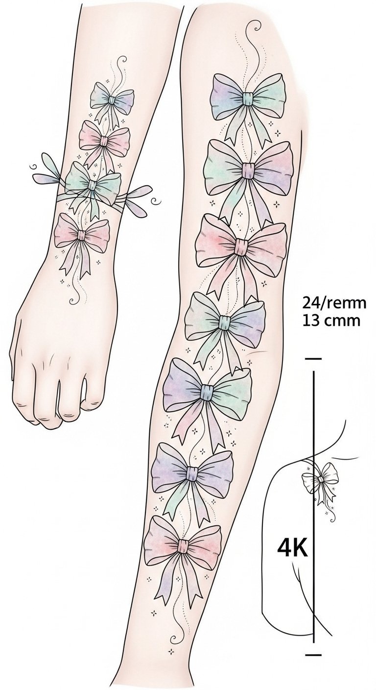 Using watercolor techniques, these tattoos create a dreamy effect, making each bow uniquely yours.