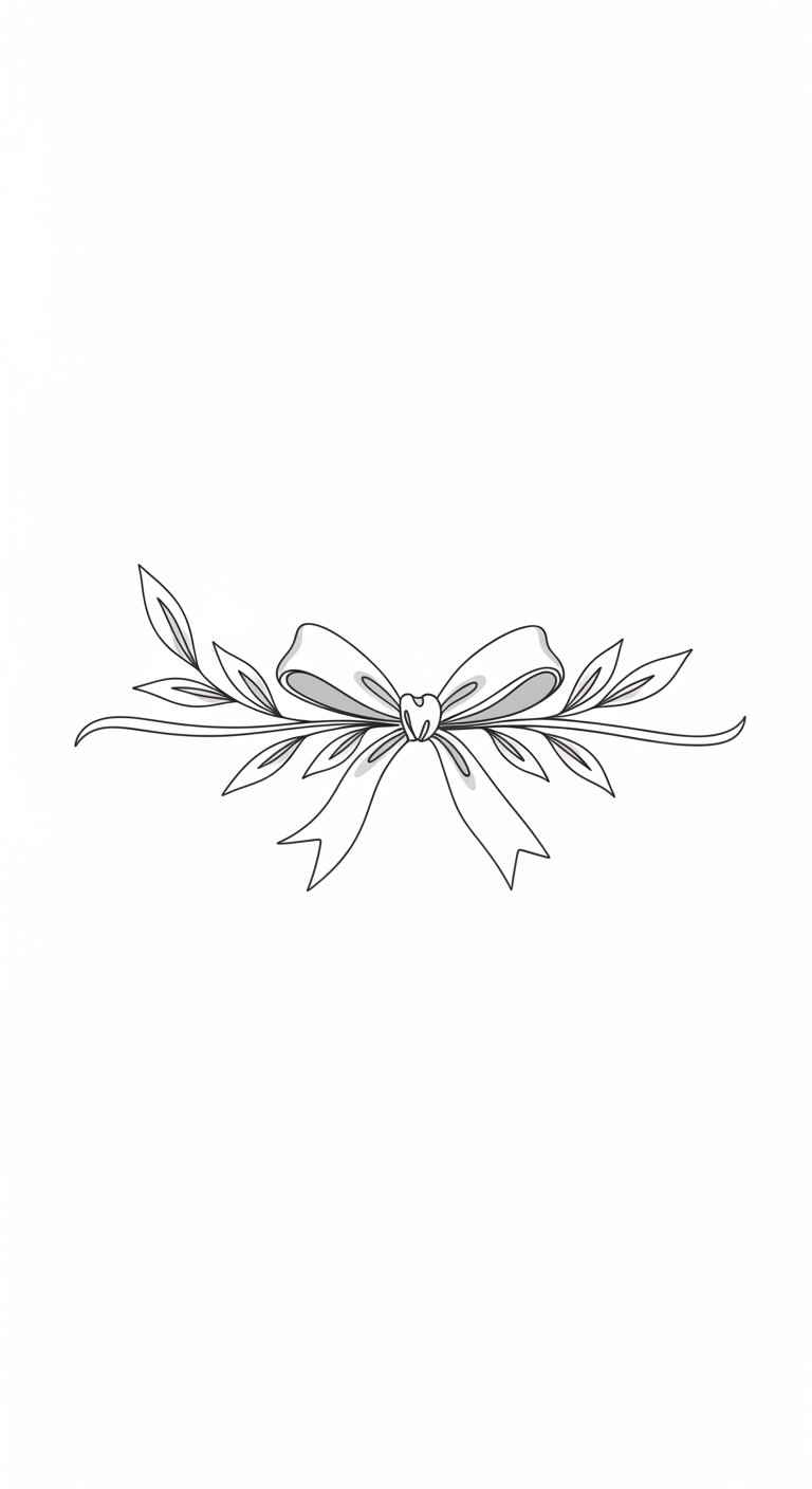 If you’re looking for a tattoo that merges elegance with nature, the fine-line bow with leaves is a stunning choice. This design features delicate leaf integration, adding a fresh, organic touch.