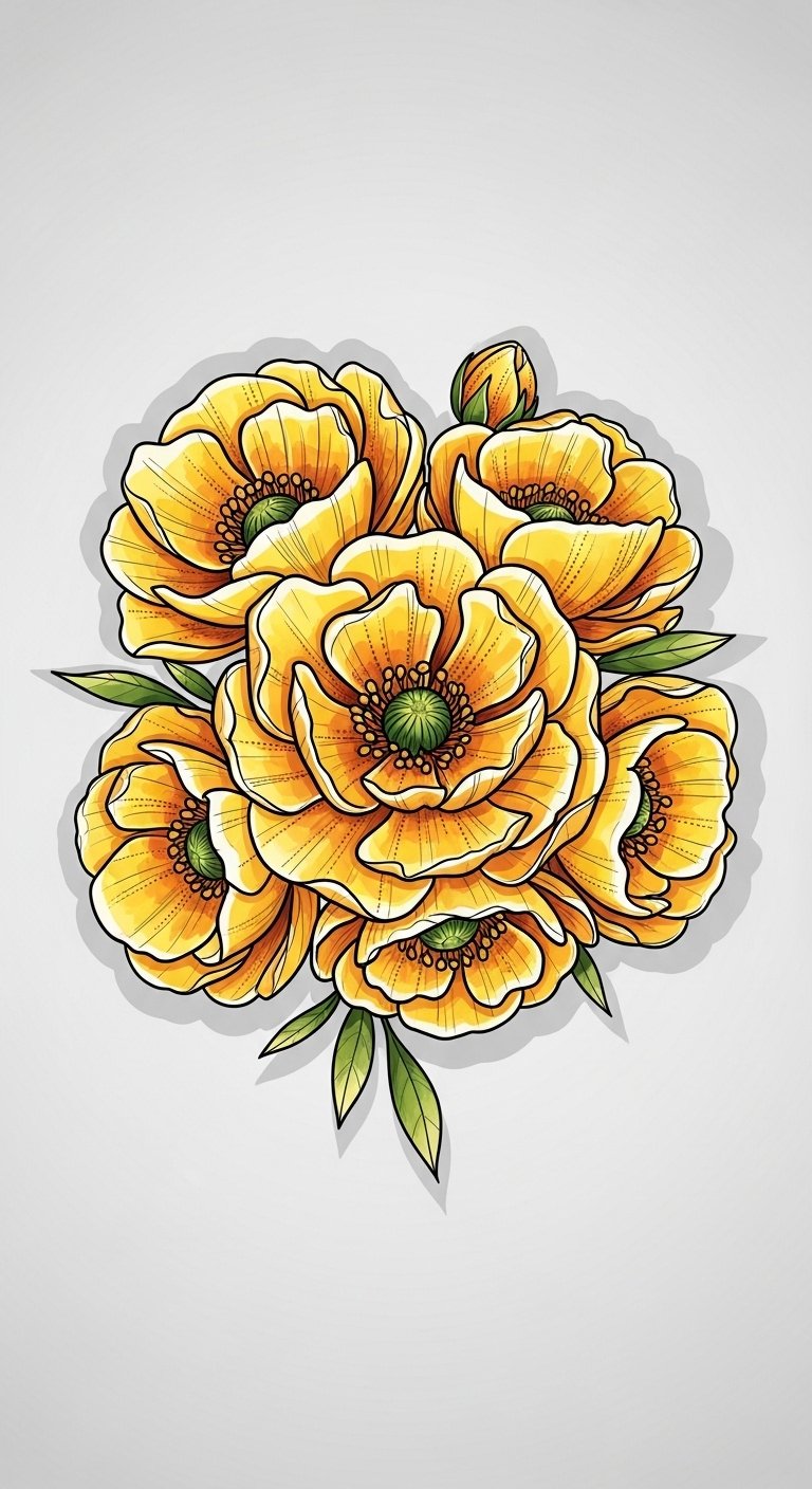 Using realistic techniques, artists capture the essence of this vibrant flower. A buttercup cluster symbolizes growth and resilience, embodying your journey toward freedom.