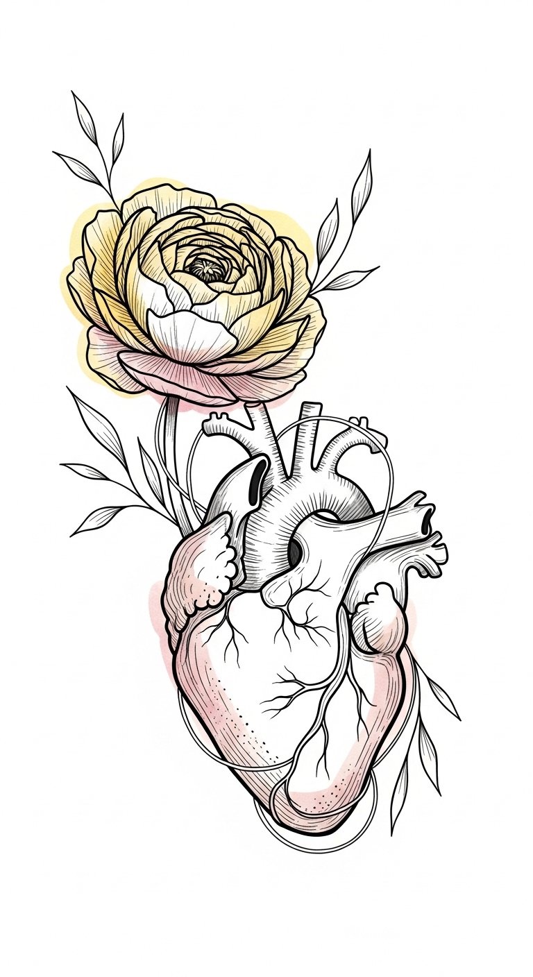 This concept emphasizes emotional warmth and personal renewal, suited for placements that allow gentle movement—forearm, rib, or shoulder blade—to echo the bouquet’s flow and intimate storytelling.