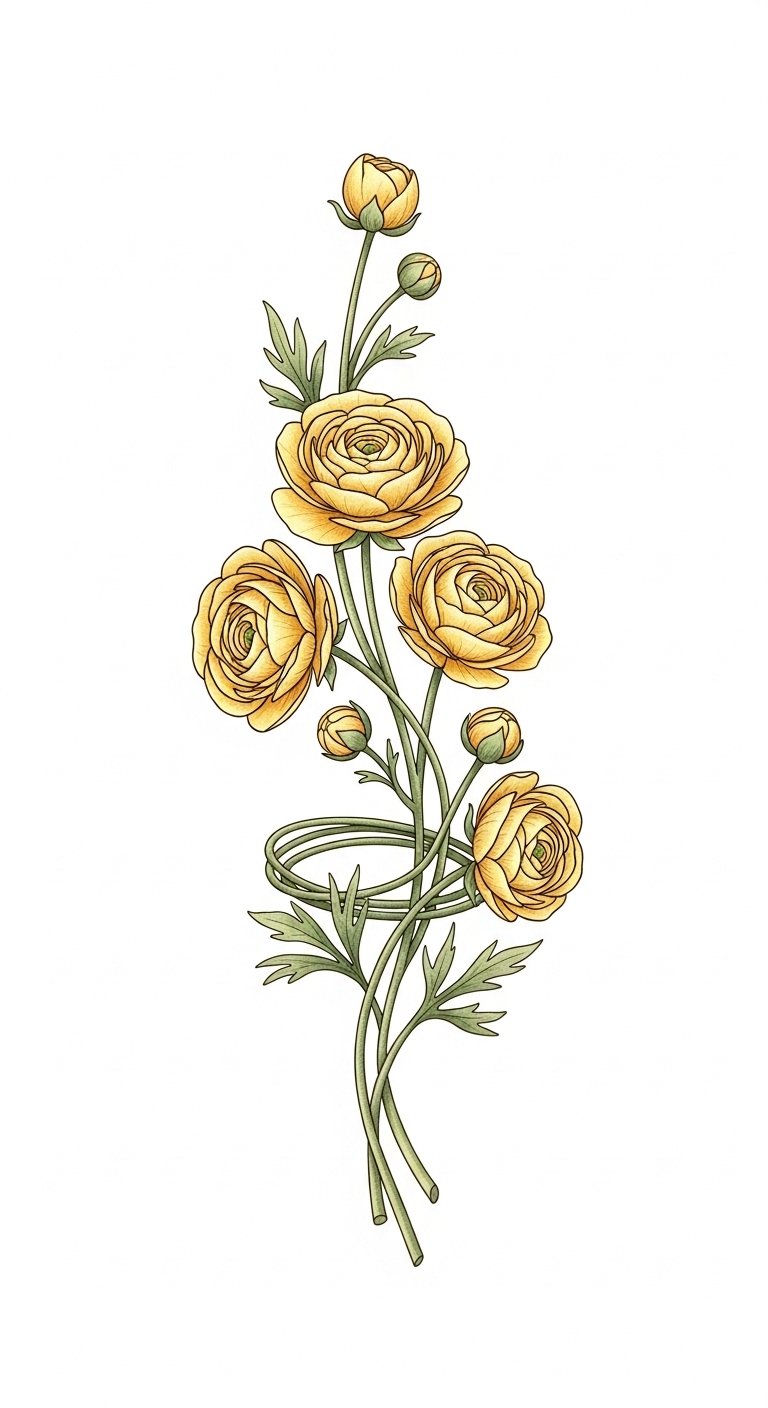 As you explore the enchanting world of buttercup bouquet tattoo designs, you’ll discover a stunning celebration of life and beauty intertwined in every delicate petal.