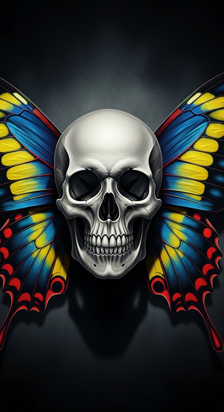 Symbolically it marries mortality and rebirth—skull as remembrance, butterfly as metamorphosis—evoking defiance, renewal, and liberated identity.