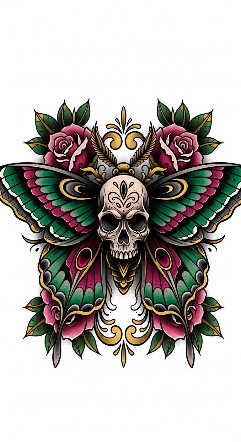 This design captures the essence of life and death through vibrant color palettes and intricate details. The neo-traditional symbolism reflects transformation and freedom, inviting you to embrace your individuality and journey.
