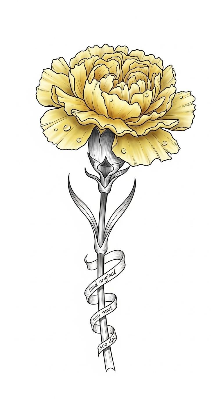 Understanding color psychology can help you choose a design that resonates with your feelings, allowing your tattoo to express your unique story and emotional journey through vibrant floral art. The red carnation embodies passion and deep love, anchoring the composition emotionally; the yellow introduces complexity—loss or caution—adding narrative tension; the white suggests purity and healing, offering balance.
