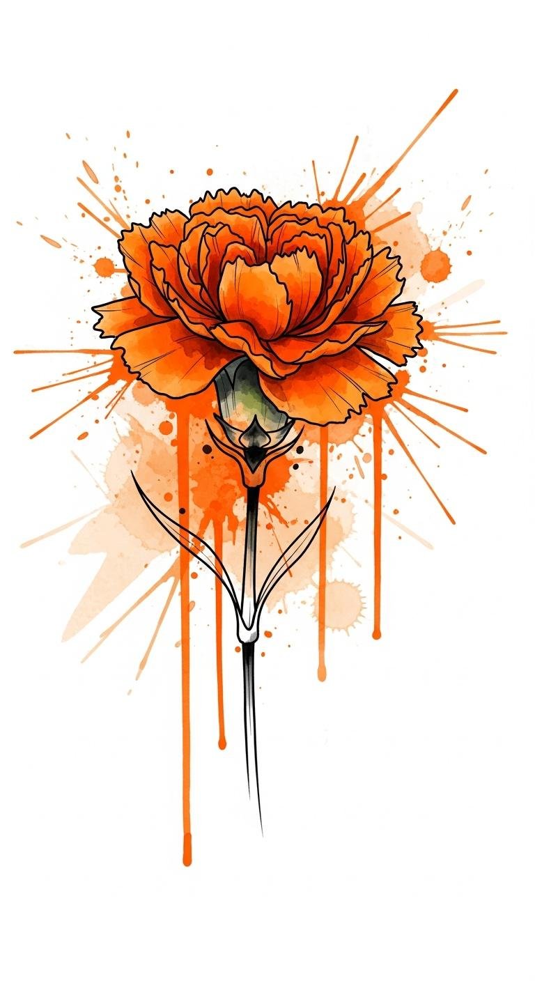 Each brushstroke unfolds a new emotion, allowing you to express your individuality and love for life, creating a vivid masterpiece that speaks volumes. This design symbolizes resilience and celebration—carnations for remembrance and affection rendered in lively watercolors to evoke spontaneity and optimism; emotionally it reads as playful yet deeply personal.