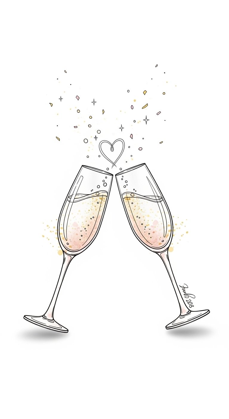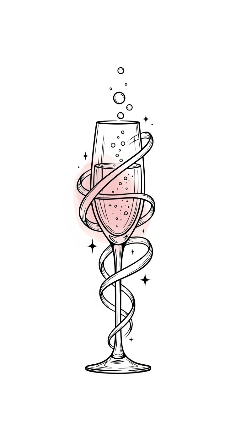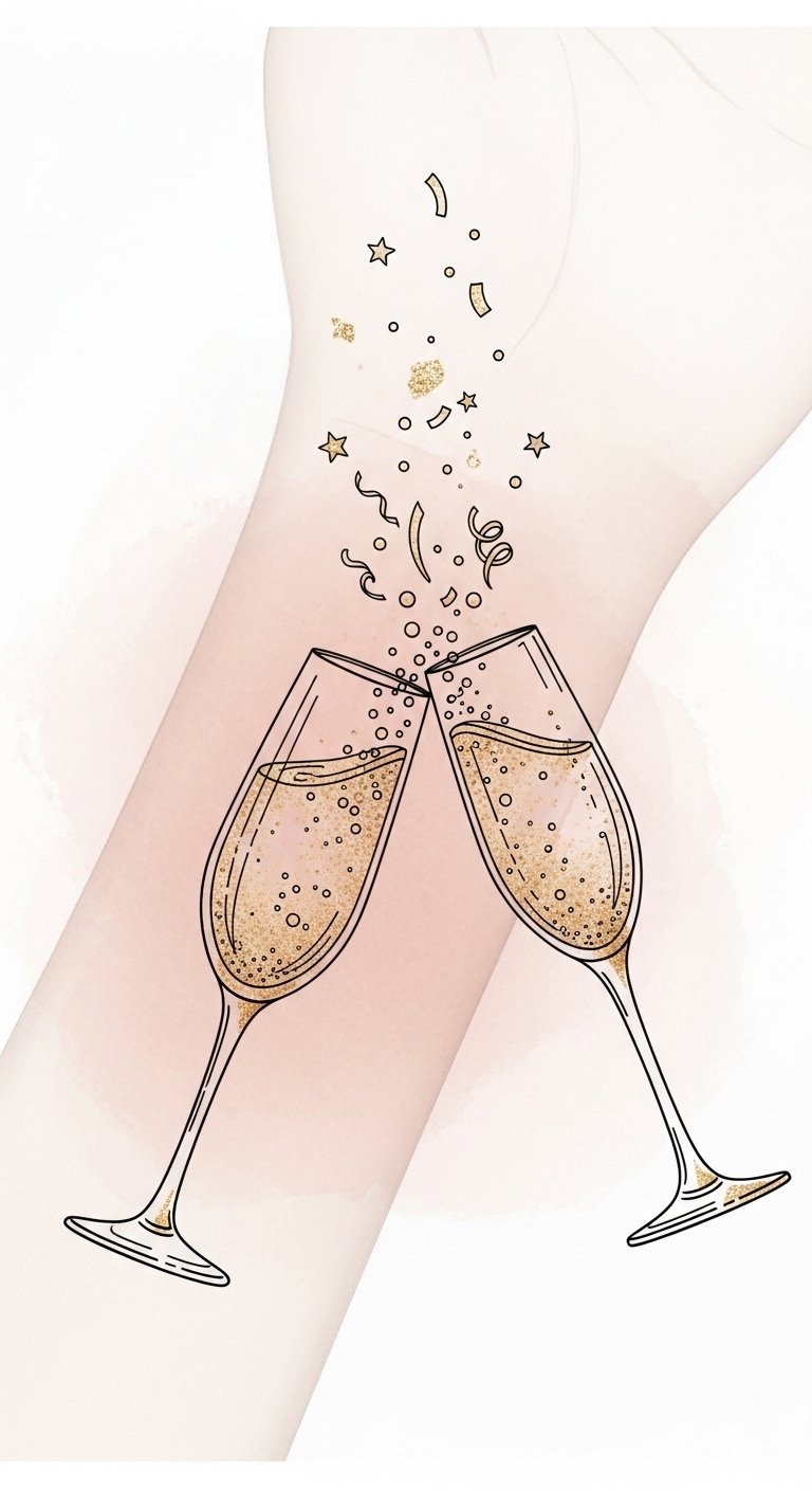 Toasting champagne glasses is a celebration in ink, capturing the essence of joy and togetherness. Each clink resonates with champagne symbolism, representing hope and new beginnings.