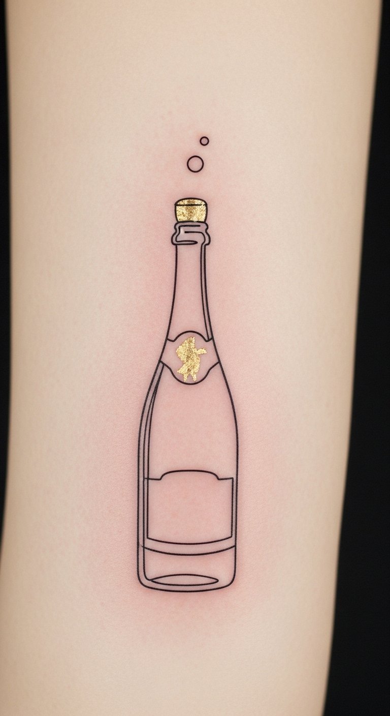 Capturing the essence of celebration, a minimalist champagne bottle tattoo serves as a powerful reminder of life’s joyous moments.