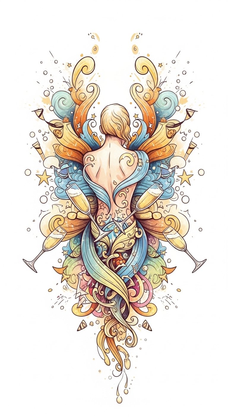Imagine swirling bubbles, flowing flutes, and celebratory symbols that embody the joy of life. This artwork can embrace champagne aesthetics, creating a vibrant tapestry on your back that radiates freedom and revelry, inviting everyone to celebrate with you.