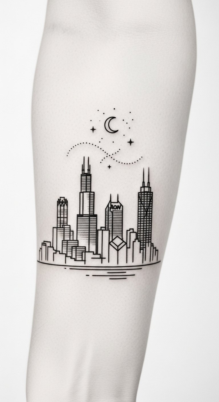 The clean lines and understated elegance invite admiration, allowing you to wear your passion for Chicago with pride. Each curve and angle tells a story, making your tattoo a personal statement of adventure.