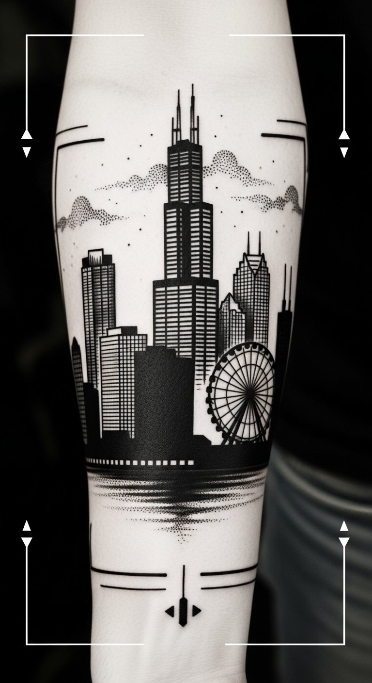 When you want your Chicago skyline tattoo to stand out with a dynamic flair, opting for a D Effect skyline design can elevate your ink to a whole new level.