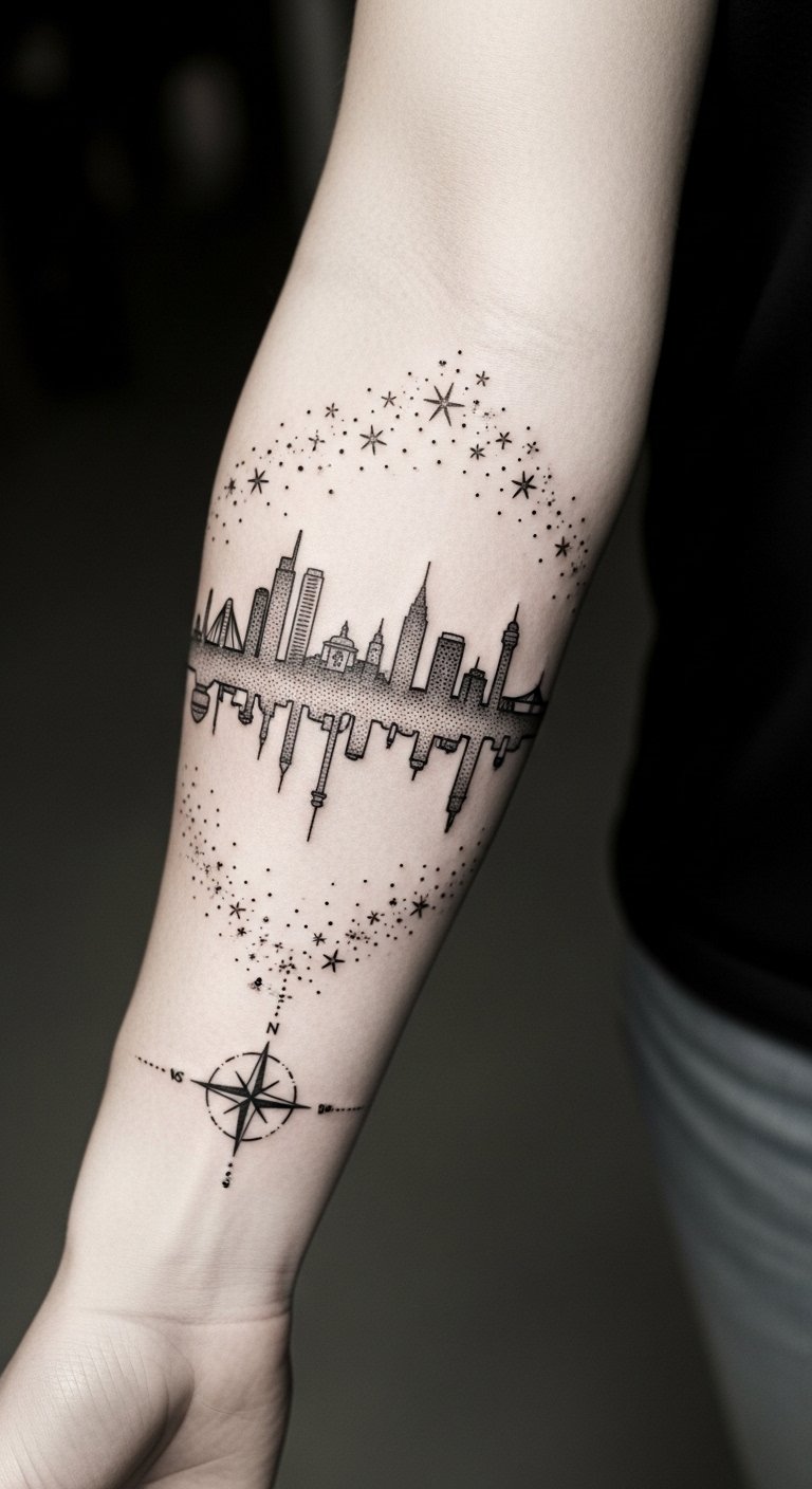 The forearm is one of the most striking canvases for skyline tattoos, offering a perfect blend of visibility and personal expression.