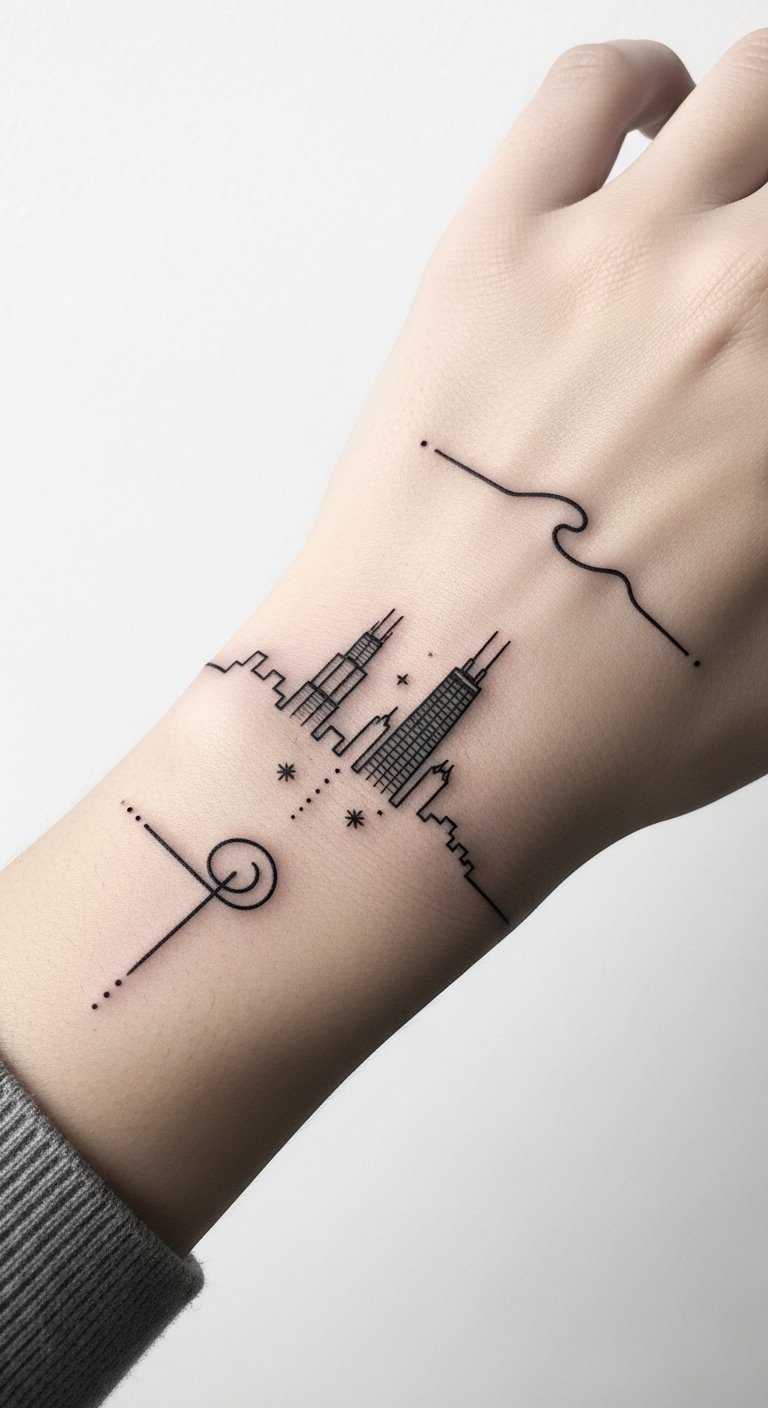 With their delicate wrist placement, these tattoos beautifully capture the essence of the Chicago skyline.