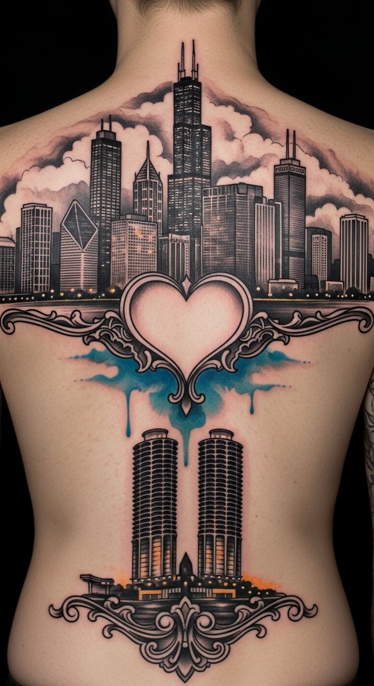 When it comes to showcasing the grandeur of the Chicago skyline, nothing compares to the stunning canvas of your back and chest.