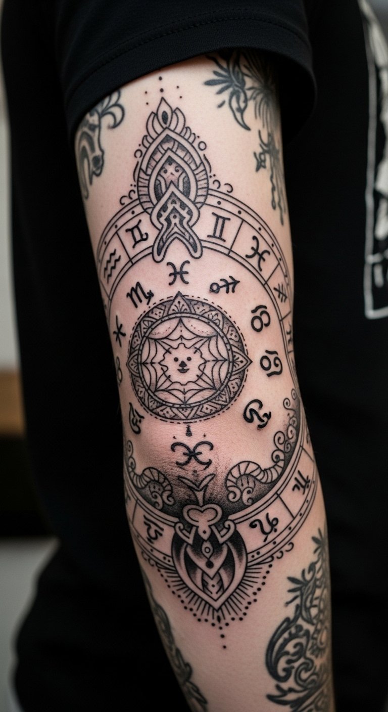 Astrological Art: Zodiac-Inspired Elbow Tattoos