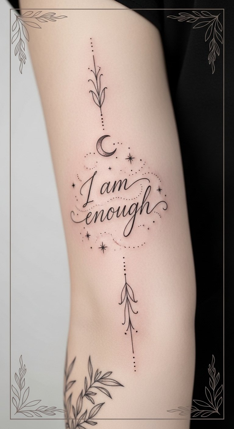 These words of wisdom, like “I am enough” or “Fearless and free,” can become symbols of personal empowerment etched on your skin.
