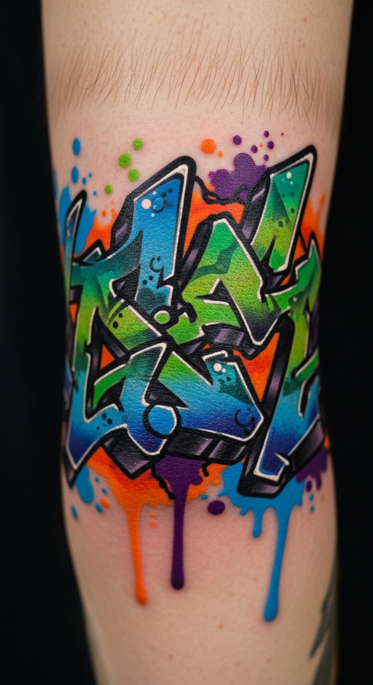 These elbow tattoo concepts channel the raw energy of the streets—bright spray-paint splashes curved to the joint, layered stencils that flow with arm movement, and stylized lettering that wraps around the elbow like a wristband of concrete poetry.