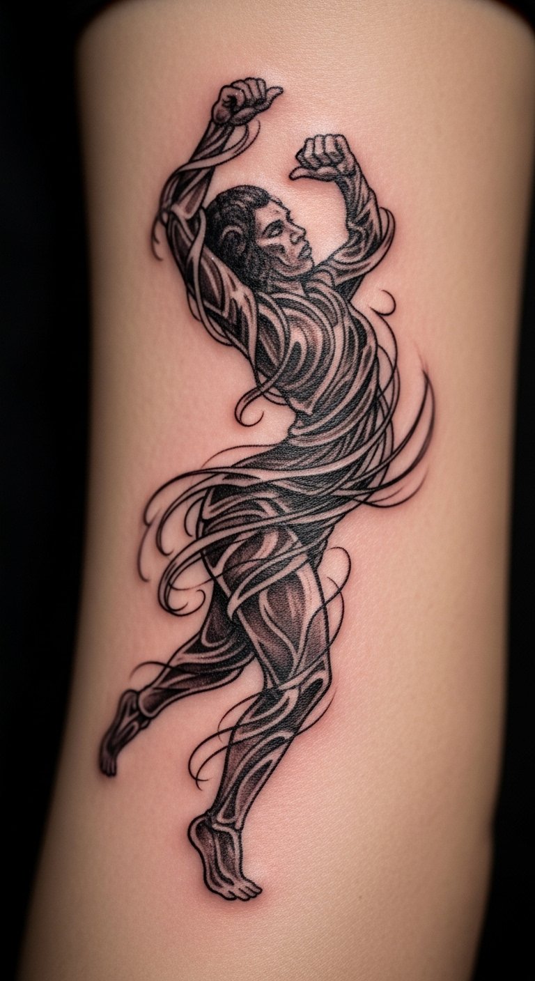 Best placed on dynamic areas like the forearm, shoulder, ribs, or calf where stretching and flexing animate the design, the tattoo becomes a kinetic emblem of individuality and artistic language.