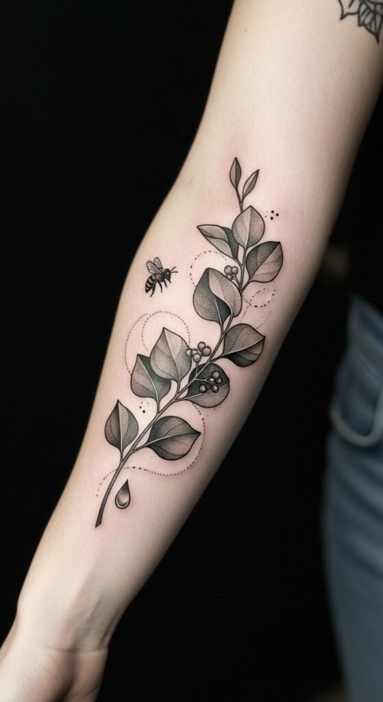 A forearm eucalyptus tattoo serves as a striking reminder of your connection to nature and the healing power it embodies.