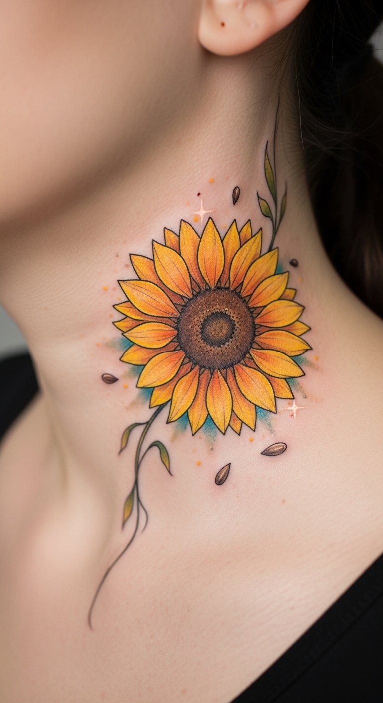 Sunflower Neck Tattoos: Growth and Positivity