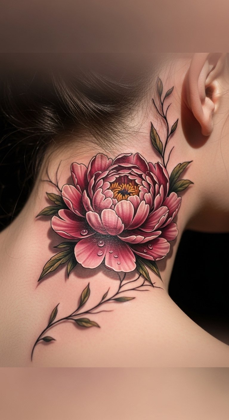 Peony Neck Tattoos: Symbol of Beauty