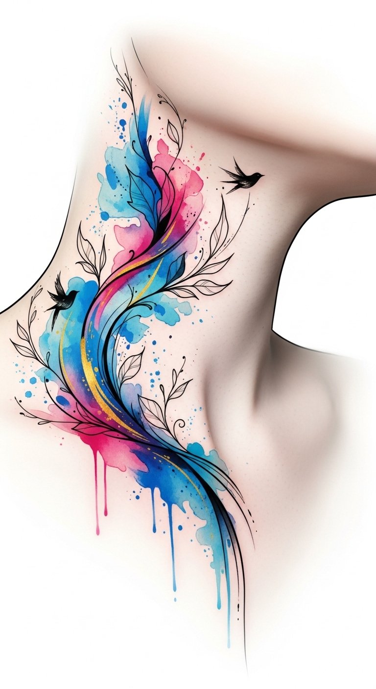 Watercolor Neck Tattoos: Vibrant Expressions