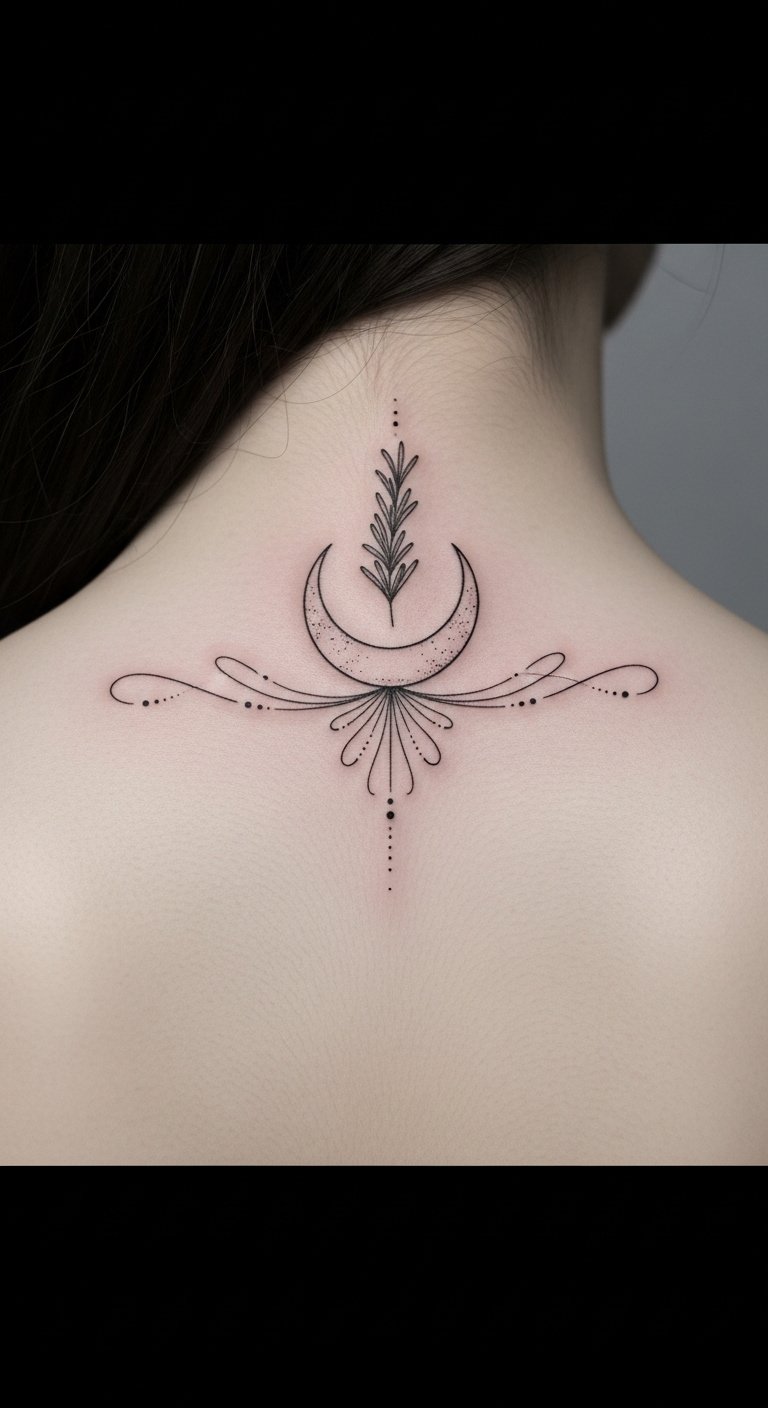 These designs celebrate your cosmic connections, reminding you of your inherent magic and freedom. Adorning your neck with these symbols empowers your spirit to shine brightly. The placement at the nape emphasizes vulnerability met with strength—the vertical flow mirrors spinal alignment and personal evolution.