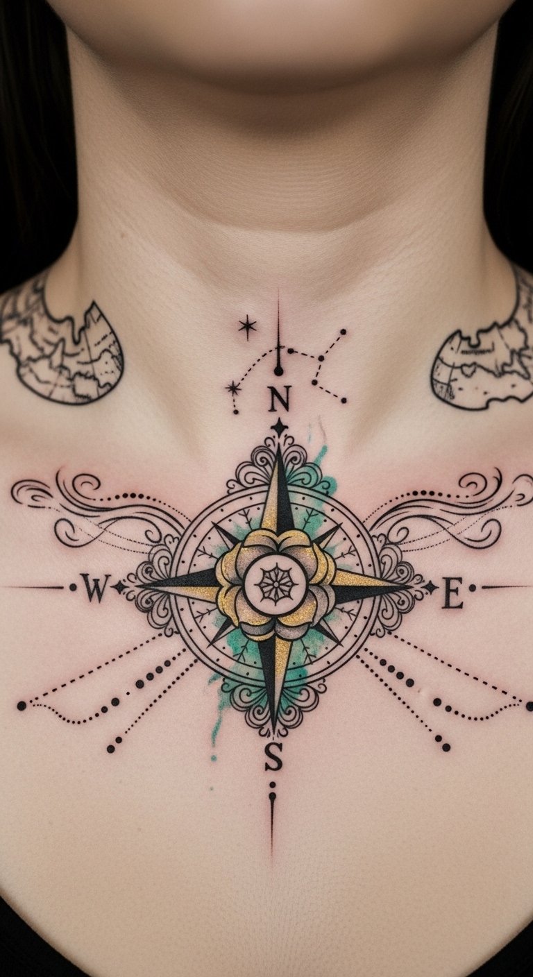 Compass Neck Tattoos: Finding Direction