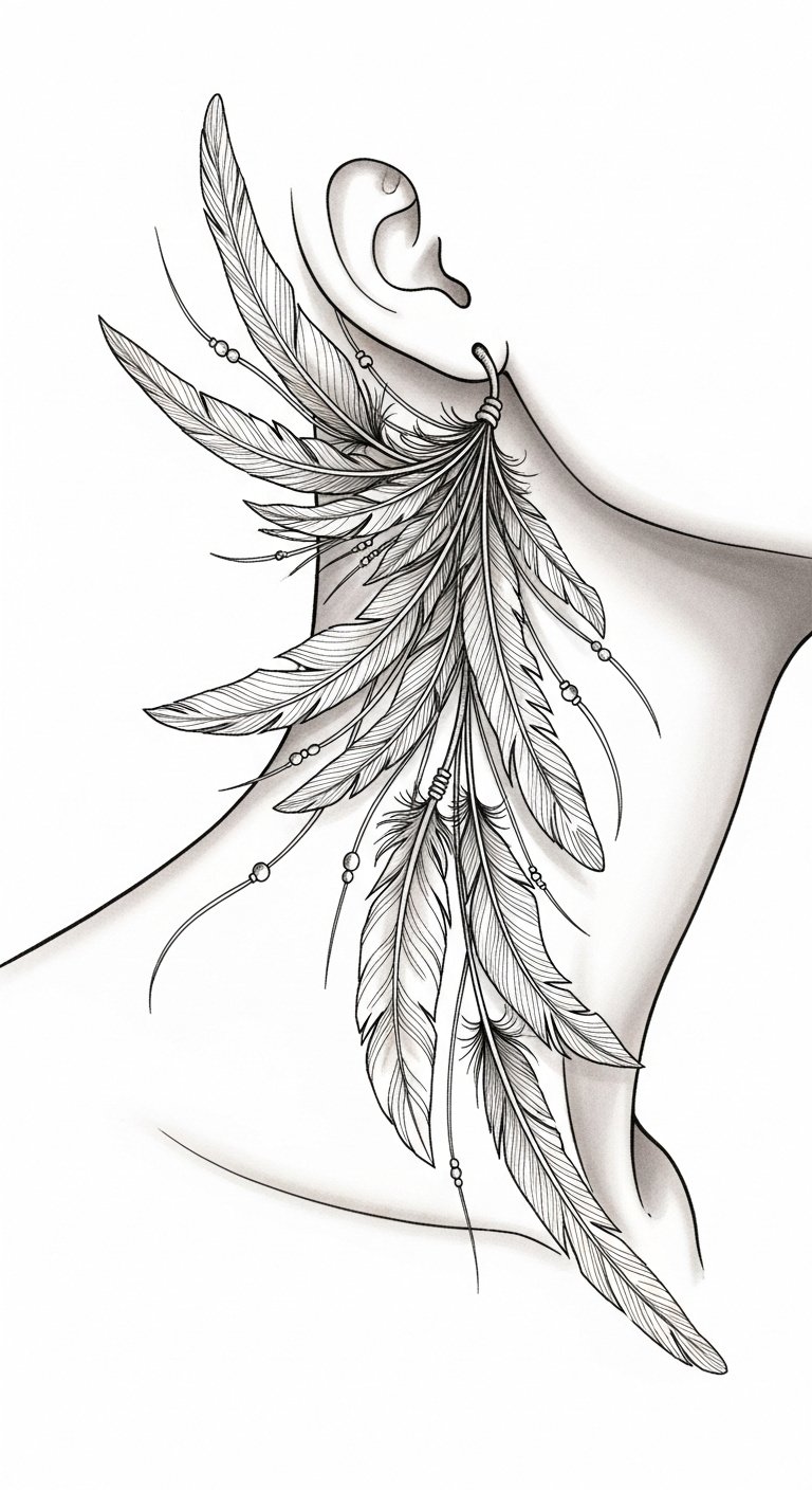 Ideal placement follows the lateral and nape areas, wrapping gently from behind the ear down to the collarbone or arcing across the throat, sized to complement bone structure and movement so the design shifts subtly when turning or tilting the head.