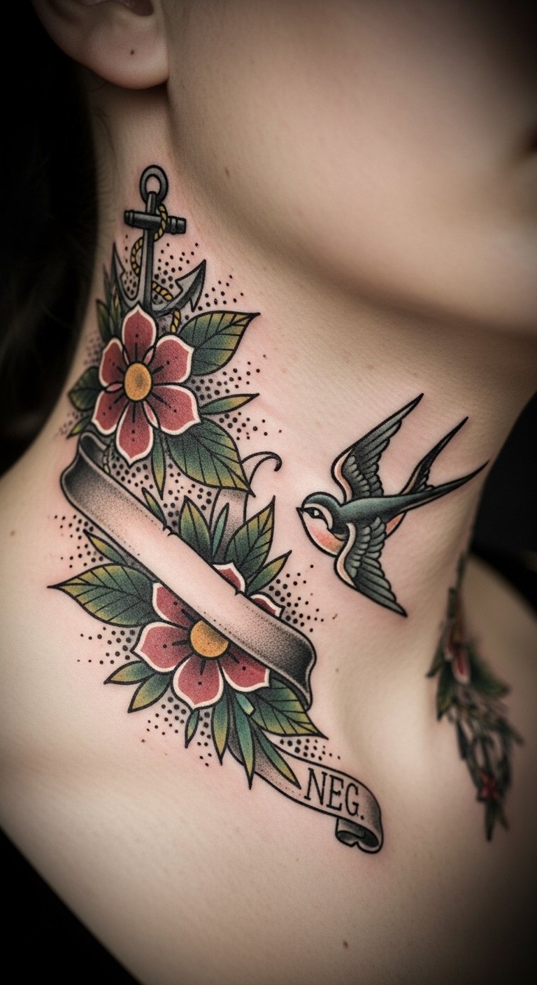 Anchor Neck Tattoos: Stability and Strength