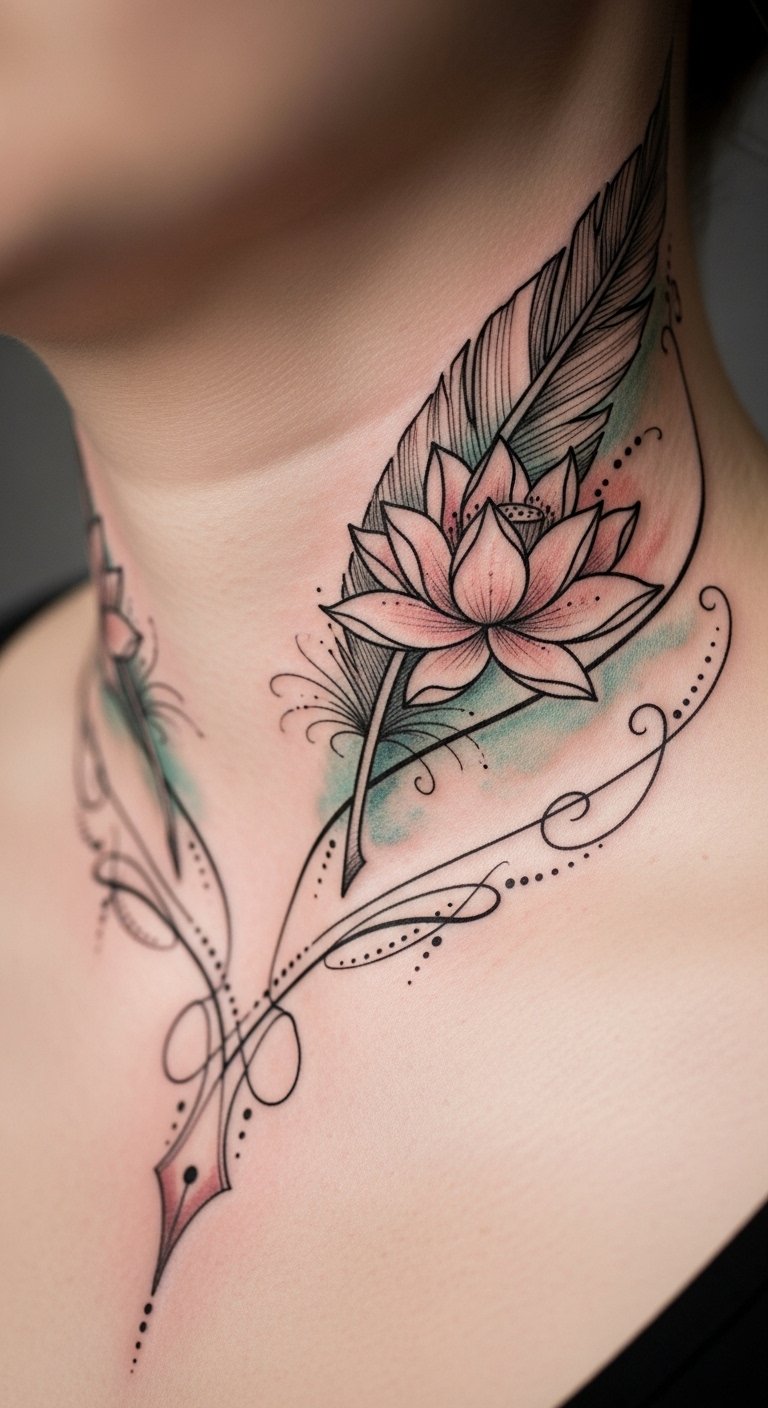 Placed to follow the natural curve of the neck, the tattoo can be shown or concealed with clothing, creating intimate meaning while inviting admiration and sparking conversation.
