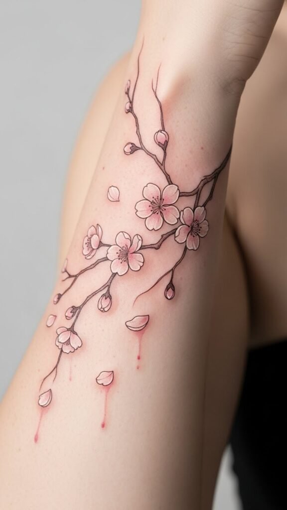 For best impact, consider placement on your wrist or shoulder, where its charm can shine. Your cherry blossom tattoo will be a timeless reminder of resilience and beauty.