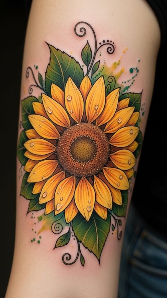 If you’re drawn to vibrant colors and a bold expression of joy, a sunflower tattoo might just be your perfect choice.